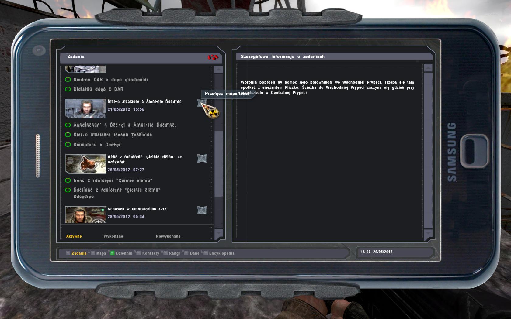 mam w krzaczkach oraz w zakładce kontakty w PDA nazwy NPC są w krzaczkach…