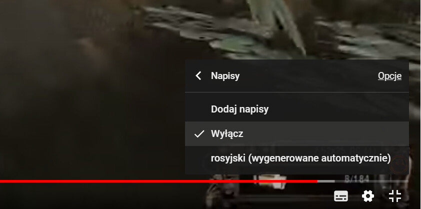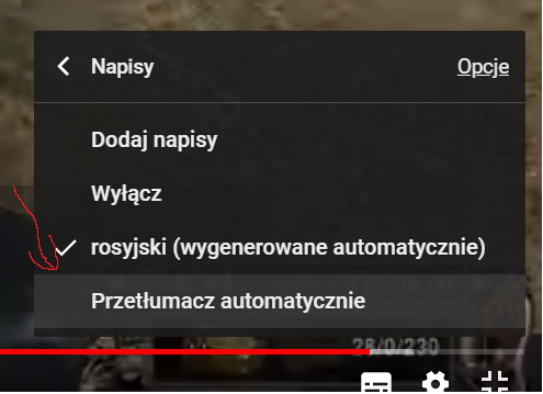 To klikamy “rosyjski (wygenerowany automatycznie)” następnie klikamy jeszcze raz w opcje, napisy, i tam jest opcja “przetłumacz automatycznie” na język, ja używam zawsze angielskiego, bo lepiej się na pewno przetłumaczy, bardziej powszechny, ale można też na Polski, Mongolski itd.