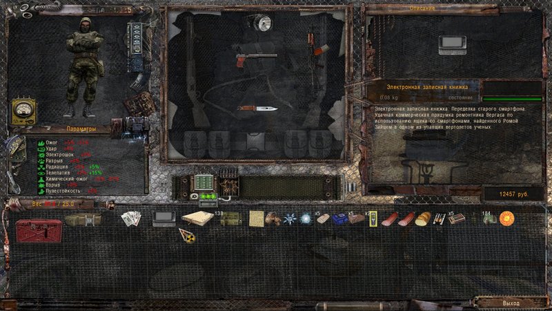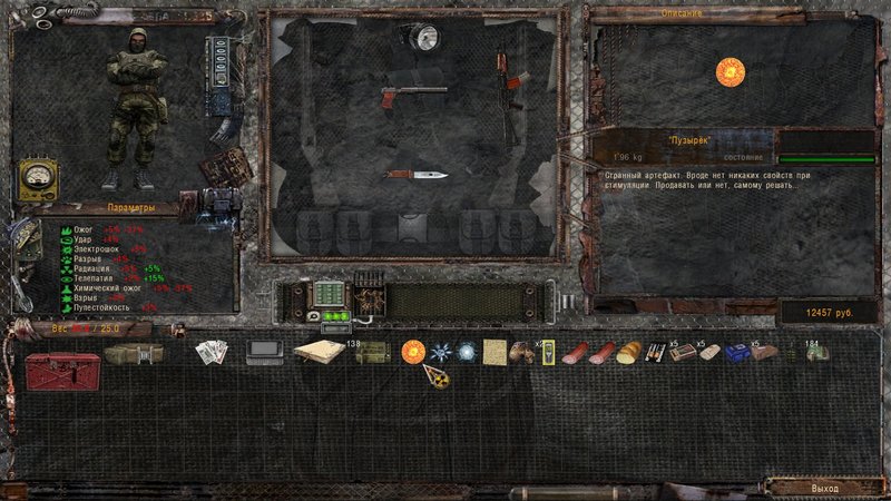Ciekawie zrobiony jest inwentarz, często zapominam, że trzymając jakiś przedmiot w ręku nie da się go otworzyć. Po otwarciu inwentarza mamy dostęp do plecaka (w którym jest wszystko co posiadamy, ale otwarcie, którego w pewnych sytuacjach trwa zbyt długo) lub szybki dostęp do pasa na artefakty (o ile takowy posiadamy), broni, jedzenia i medykamentów oraz chlebaka. Chyba po wykonaniu zadania na pokojowe uwolnienie Żwawego (zorientowałem się później) mamy dostęp do kamizelki taktycznej, która pozwala szybciej korzystać z większej ilości przedmiotów.