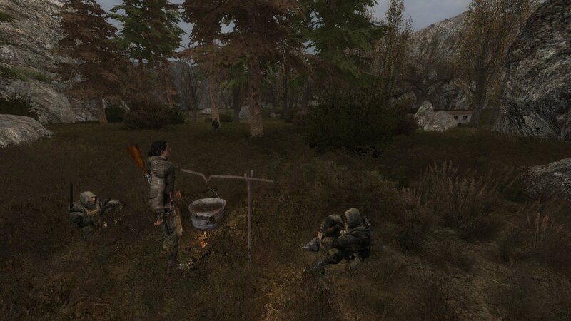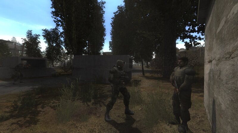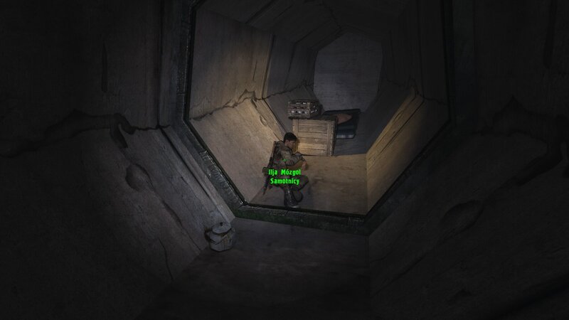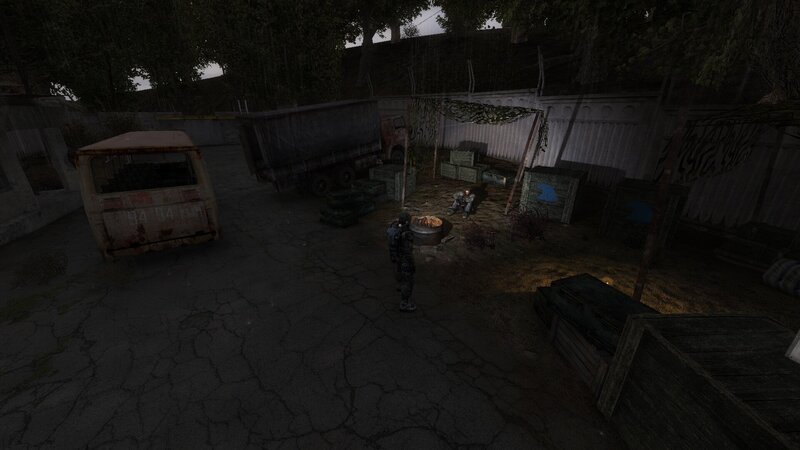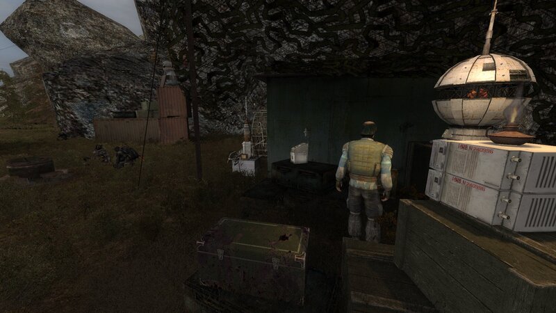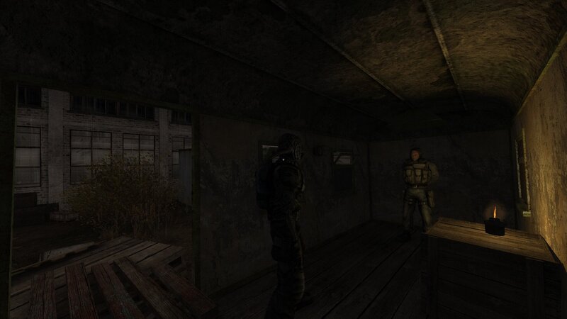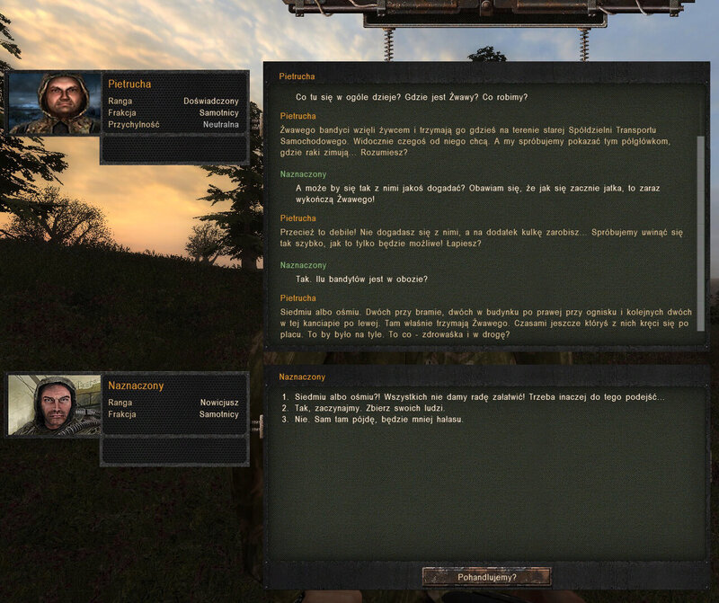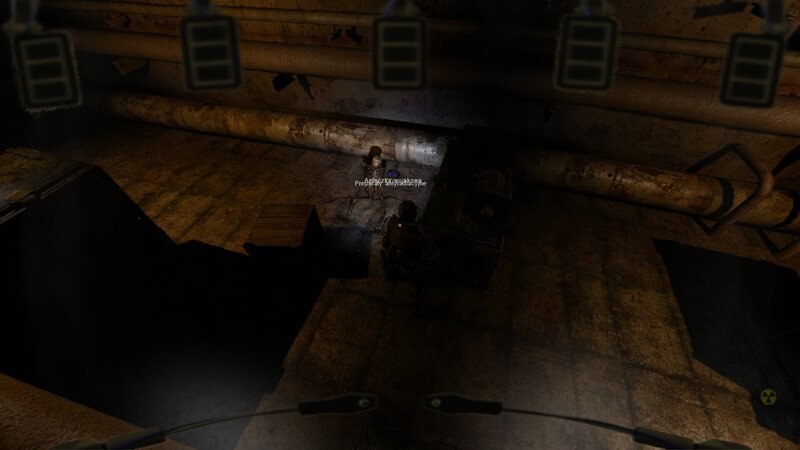 Następnie wracamy do Pietruchy, opowiadamy mu o planie Wilka i ruszamy na rozmowę do bandytów obozujących z STS. Idziemy tam bez broni i odzieży ochronnej.