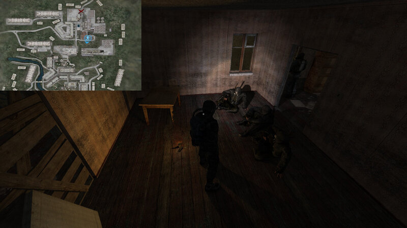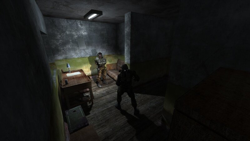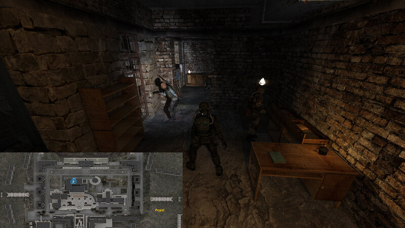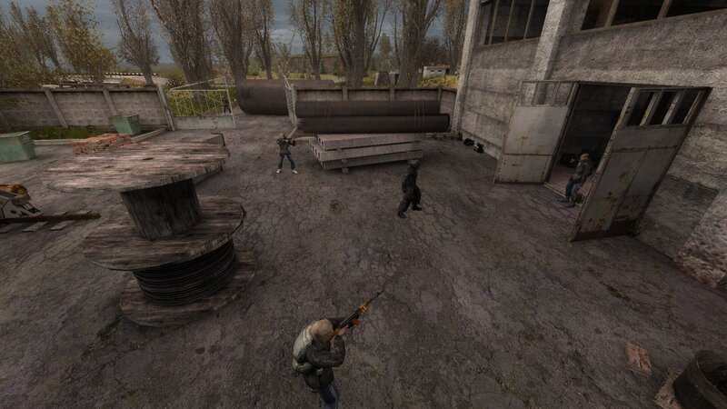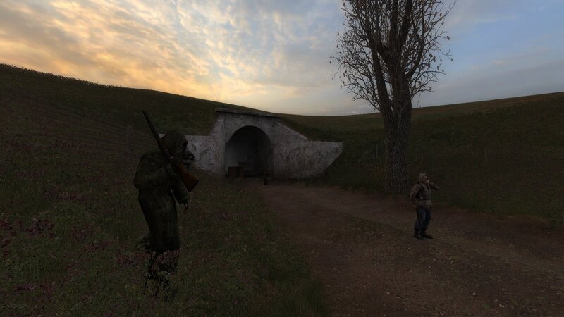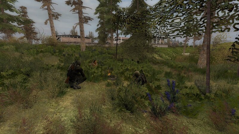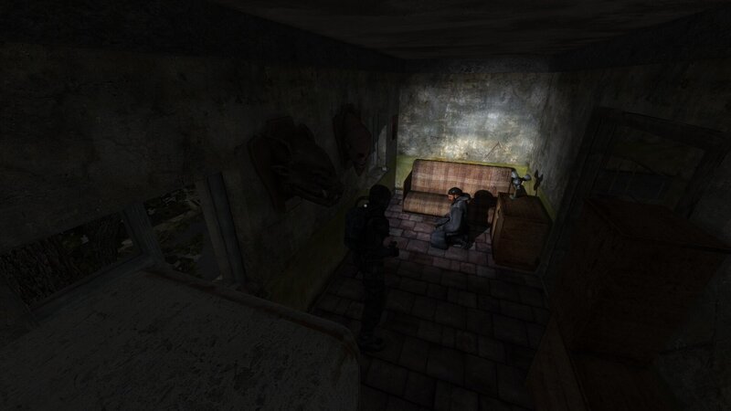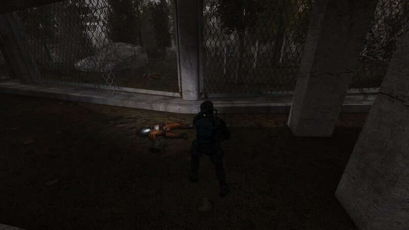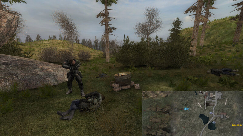 Następnie wracamy do Pietruchy, opowiadamy mu o planie Wilka i ruszamy na rozmowę do bandytów obozujących z STS. Idziemy tam bez broni i odzieży ochronnej.