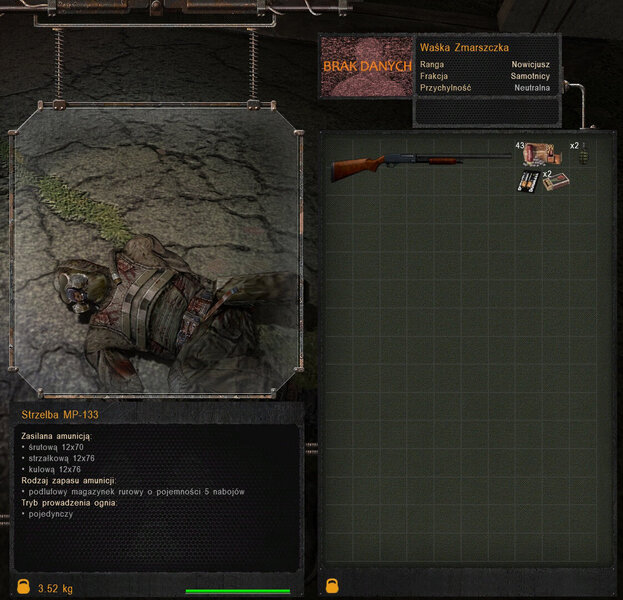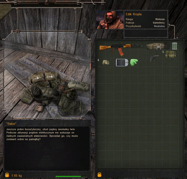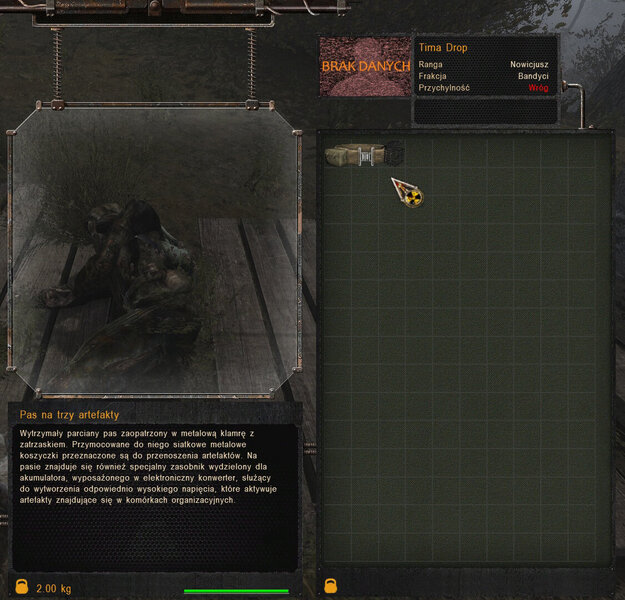Druga i trzecia opcja to rozwiązania siłowe, które zakończą się dla nas tym samym wynagrodzeniem od Wilka: losowym artefaktem pierwszego poziomu, trzema butelkami wódki, granatem F-1 i kwotą 4500 rubli. Dodatkowo w przypadku drugiej opcji Pietrucha i jego grupa może zginąć.