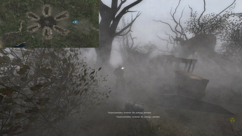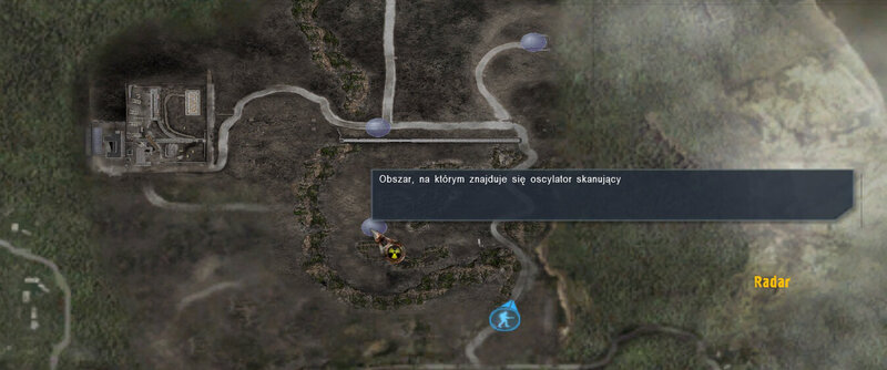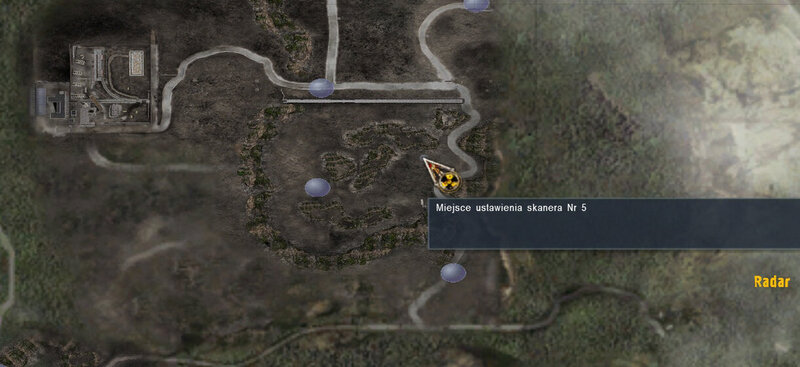 - Miejsce ustawienia skanera na Radarze to szczyt głazu (nie dociera tutaj promieniowanie MZ, pojawi się znacznik na mapie w PDA). Po ustawieniu skanera można porozmawiać w Barze ze Serafinem, który wynagrodzi nas: nabojami WOG-25 - 10 szt., granatami F-1 - 10 szt., granatami RGD-5 - 10 szt, deszyfratorem (uszkodzonym; nie zawsze oddaje go GG) i receptą na Elektrokorale ze Śnieżnej. Po tym zadanie kończy się, a Serafin będzie siedzieć w Barze jeszcze przez jakiś czas, a potem zniknie z Zony.