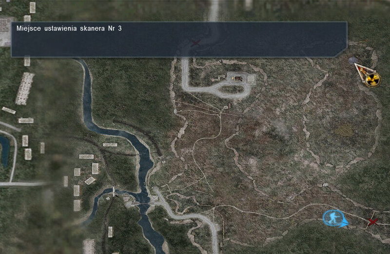 Najpierw trzeba go podleczyć, a później dać oddać mu jeszcze naukową apteczkę, aby mógł dotrzeć do Baru (tak naprawdę można dać dowolny rodzaj apteczki). Serafin-12 poprosi nas o ustawienie trzech skanerów i wyda nam pierwszy z nich, a sam pójdzie na lokację Bar. Na ustawienie każdego ze skanerów będziemy mieli 5 dni Zony (jeśli w tym czasie nie ustawimy danego skanera, to zadanie zostanie niezaliczone i nie otrzymamy następnego skanera). Oto wszystkie miejsca ustawienia skanerów i nagrody za ich ustawienie:
