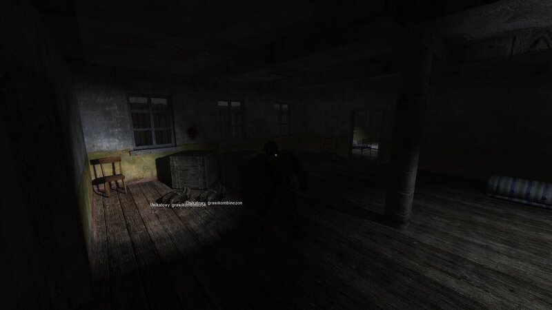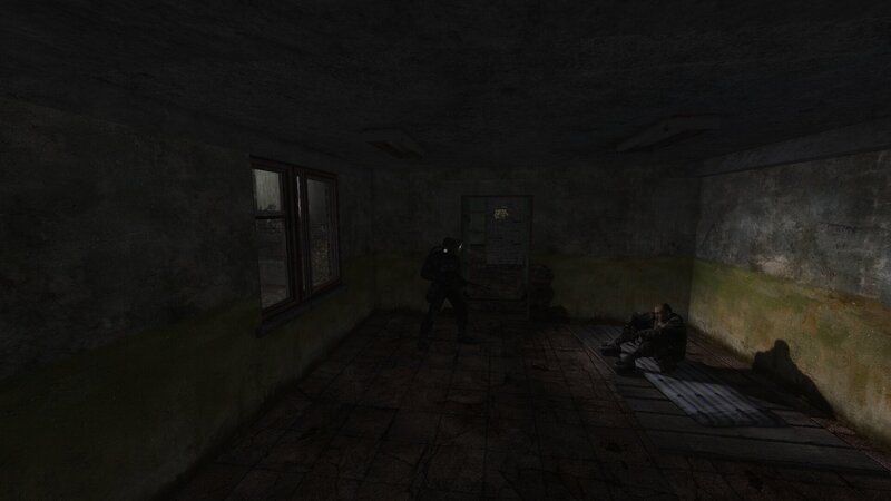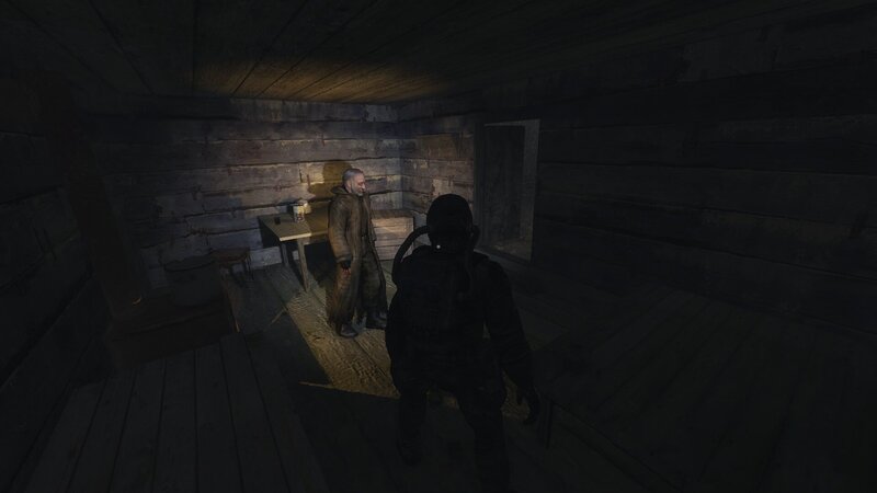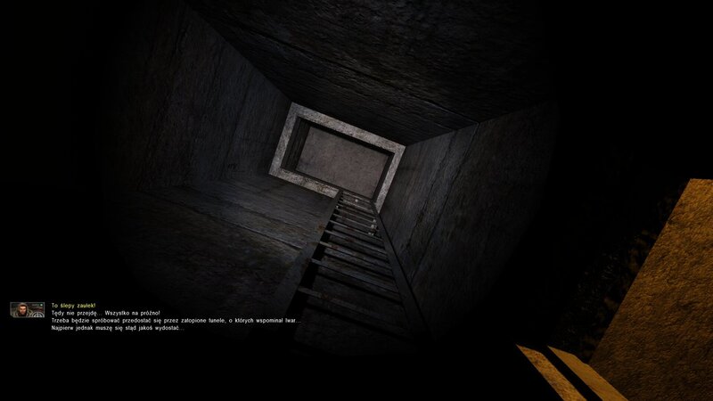 Po rozmowie z Sidorowiczem gadamy z Wilkiem (stalker da nam butelkę wódki dla kurażu), a ten wyśle nas do Pietruchy, żeby odbić siłowo Żwawego.