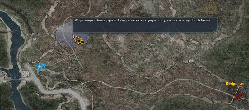 Oddawszy artefakt można iść do Borzyja i porozmawiać z nim. Bandyta poprosi GG ażeby ten zabił pijawki żerujące w Rudym Lesie i zaznaczy miejsce gdzie się one znajdują. Trzeba nie tylko zlikwidować “krwiopijców”, ale także pobiegać po miejscu zaznaczonym przez Borzyja w naszym PDA, aby zadanie się zaliczyło i można było odebrać nagrodę: artefakt Akumulator. Dodatkowo Borzyj wspomni, że w Rudym lesie znajduje się przejście na lokację Podziemia Kopaczy aka Pieczara.