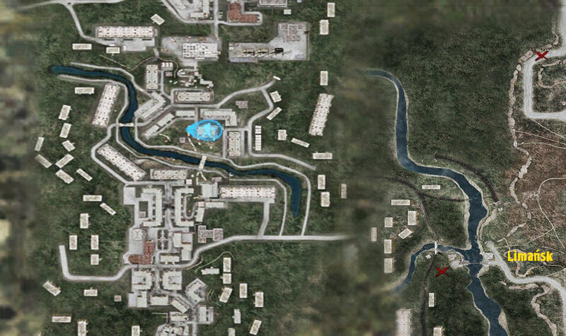 W czasie rozmowie z danym stalkerem dowiemy się, że wejście znajduje się za mostem (po stronie Limańska), ale bronią go drzwi z zamkiem kodowym. Kody wejście i wyjście są różne, ale istnieje tylko kilka ich wariantów kodów (losowanych wraz z rozpoczęciem nowej gry):