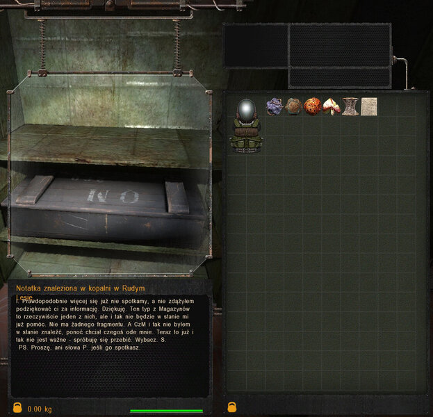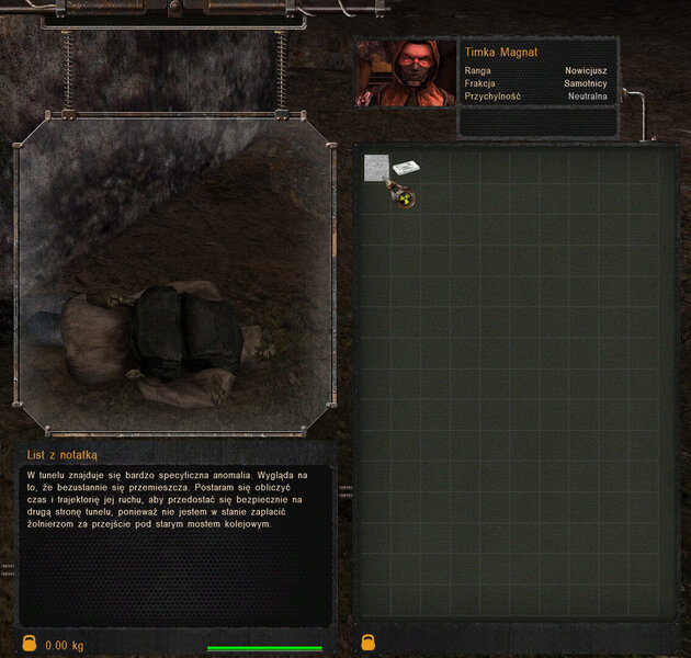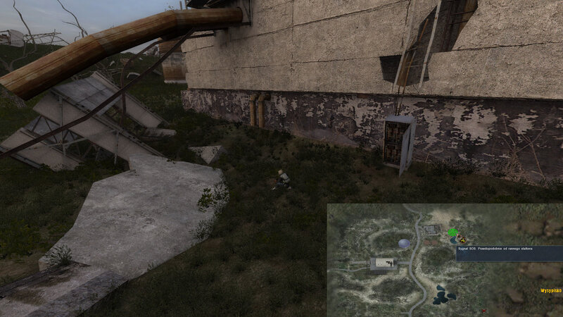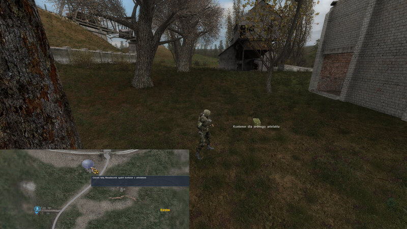 Po wyjściu z bunkra szukamy Nieudacznika (siedzi w piwnicy, gdzie obudził się GG). Rozmawiamy z nim. Dajemy mu energetyka, po czym stalker wskazuje nam miejsce na mapie PDA (okrągły znacznik na mapie w PDA może zniknąć po wczytaniu gry), gdzie zgubił kontener.