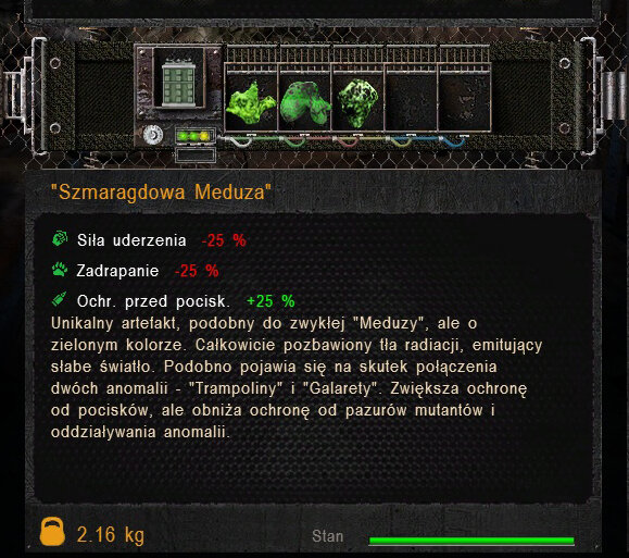 - w zamian za artefakt pierwszego poziomu można zamówić akumulator u Sidorowicza, ale trzeba będzie na niego poczekać dobę czasu gry.