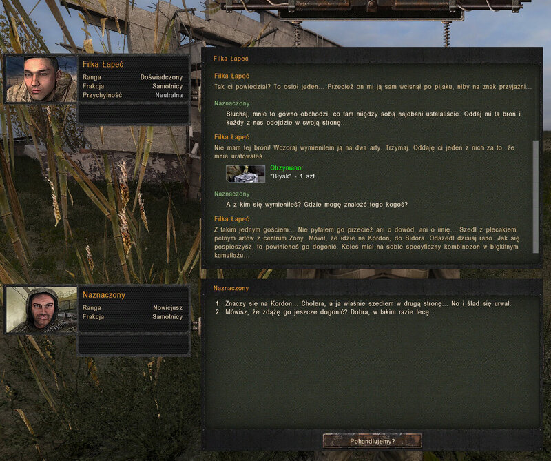 Po tym można będzie porozmawiać z Leśnikiem, który odeśle GG do stalkera (z losową ksywa znajdującego się na losowej lokacji).