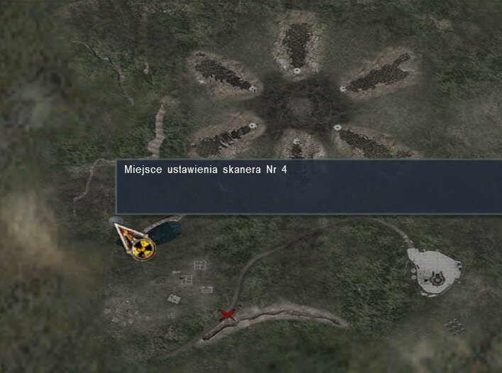 - Pierwszy skaner instalujemy na obszarze Rudego Lasu w zamkniętej dolinie na wieży czołgu (pojawi się znacznik na mapie w PDA). W dolinie żeruje dużo mutantów - kontroler, pseudogigant, pijawki, snorki, tuszkany i pseudopsy. Po ustawieniu skanera można porozmawiać w Barze ze Serafinem, który wynagrodzi nas nabojami WOG-25 - 10 szt., granatami F-1 - 5 szt. i granatami RGD-5 - 5 szt. Zleci nam również ustawienie drugiego skanera (i przekazuje go nam);