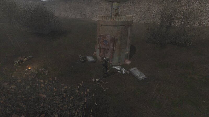 Możemy jeszcze dojść do przejścia na Wysypisko, gdzie przy ognisku za BTR będzie siedział ojciec Diodor (można się z nim przywitać:). W okolicy znajduje się kilka ciekawych przedmiotów: