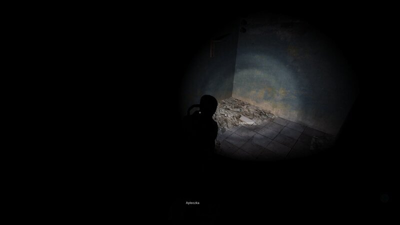 Będzie tam leżeć teczka z dokumentem Wilka, a na niej pistolet PB (może on zniknąć, kiedy po podjęciu zadania wczytamy grę). W dokumencie będzie recepta transmutacji artefaktu Błysk z anomalii Spalacz. Po zabraniu rzeczy można ruszyć dalej, ku wyjściu z tunelu (znajdziemy się wtedy po drugiej, północnej stronie nasypu kolejowego). Obszedłszy świńską fermę i przeszedłszy drogę, w zburzonym budynku natkniemy się na Doktora.