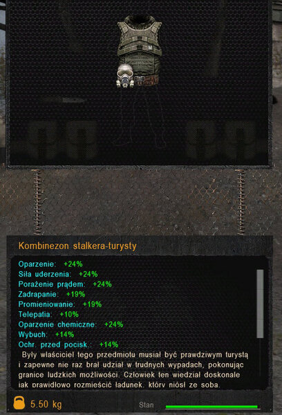 Za oddanie kurtki są trzy warianty nagrody: 3000 rubli, dozymetr lub schowek na lokacji Jelito Zony w zawalonym tunelu kolejowym, naprzeciwko przejścia do Sanatorium. Sam schowek znajduje się na samym szczycie dużego głazu (w środku plecaka jest losowy artefakt drugiego poziomu).