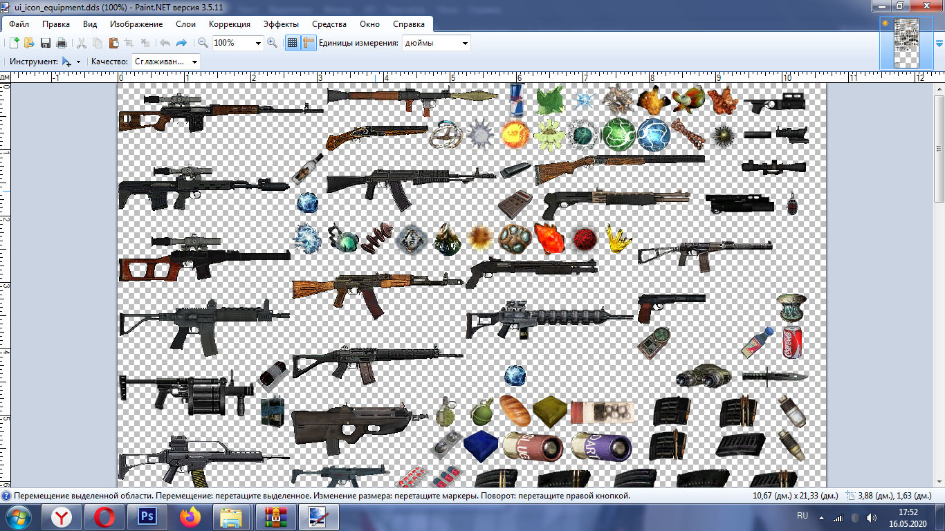 Opis: Zmienione ikonki broni, pancerzy, jedzenia, medykamentów i różnych przedmiotów.