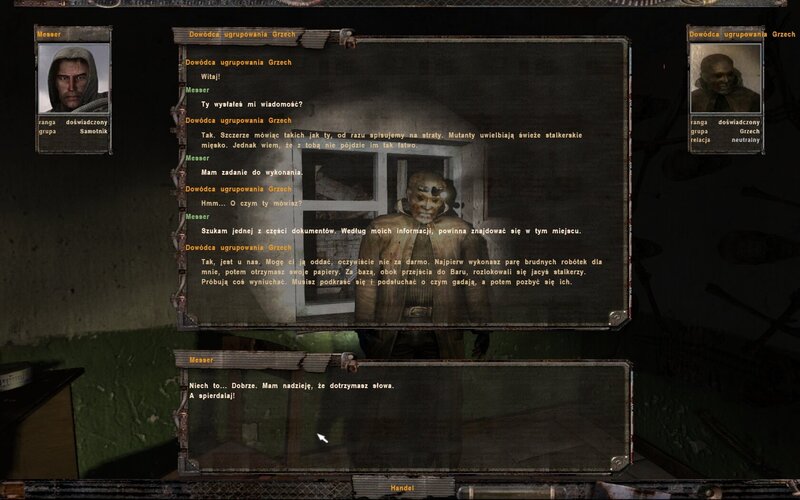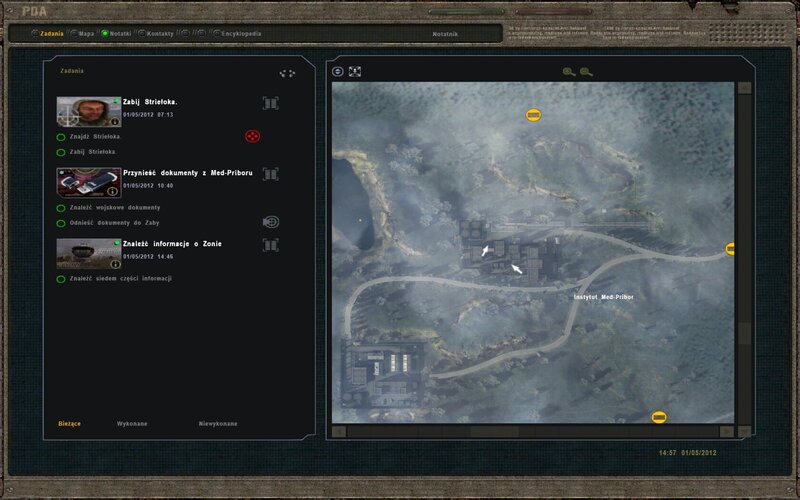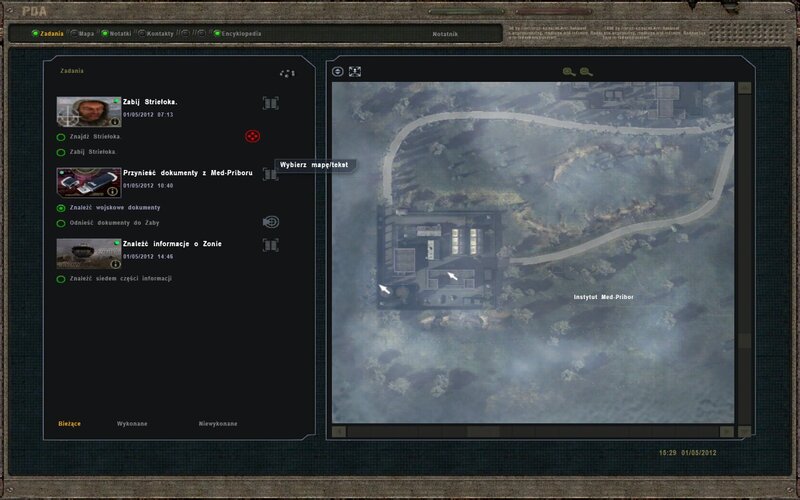 Po odnalezieniu ostatniego dokumentu przyjdzie wiadomość na PDA od Dziennikarza. Znajduje się w jednej z chat na lokacji Świetlisty Promień.