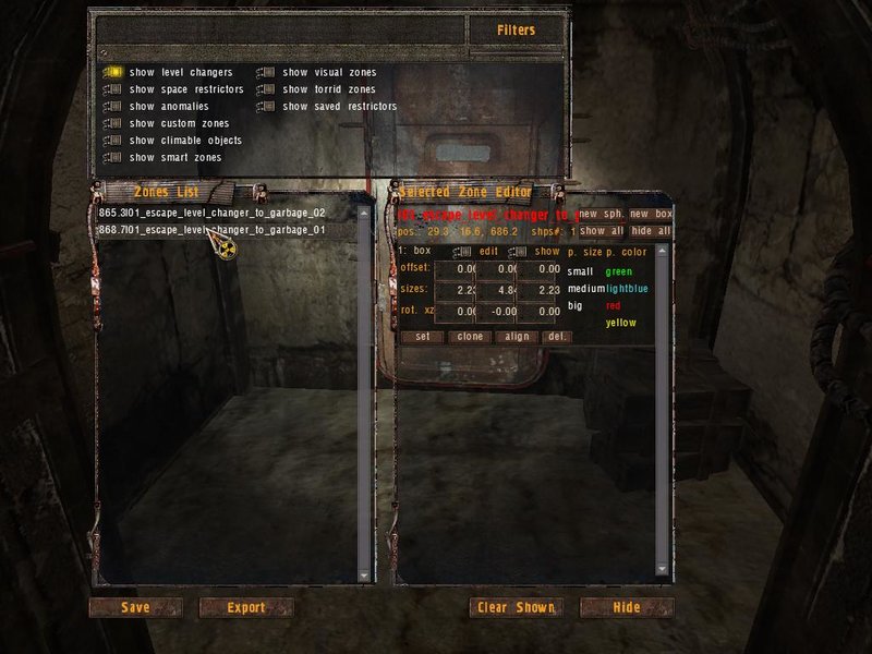Moja wiedza o wypaczonej formie, w jakiej lokacje znalazły się w grze, nie była dobra. Nie mówię tu o zmianie koncepcji, gdzie lokacje zostały całkowicie przeprojektowane, tylko o wadach wydawniczych - mimo że wiele z nich było w dobrym stanie we wczesnych kompilacjach. Powstał nawet pewien slang, aby opisać ów lokacje - “sandwich AI grid”, gdzie dwie siatki AI leżą jeden na drugim na tej samej płaszczyźnie (niewidzialne kwadraty, po których chodzą NPC). Liczne dziury w tej siatce AI w miejscach, gdzie kiedyś było drzewo, słup, ławka, jednak zostały usunięte w wydanej wersji (w grze wygląda to tak, jakby NPC nagle bez powodu zajął pozycję i chodził po zupełnie pustej przestrzeni). Niektóre lokacje, takie jak Dolina Mroku, były sitem - tyle było w nich “dziur”. Wszystkie one musiały zostać naprawione. Należało przywróć usunięte obiekty lub zmienić położenie siatki AI. Po wydaniu Cienia Czarnobyla z wcześniejszych wersji pozostała duża ilość “ogonów” z gry prowadzących donikąd. Oczywiście nie znalazło to odzwierciedlenia w poprawie stabilności. W OGSE 0.6.9.3 wszystkie znalezione błędy zostały naprawione.