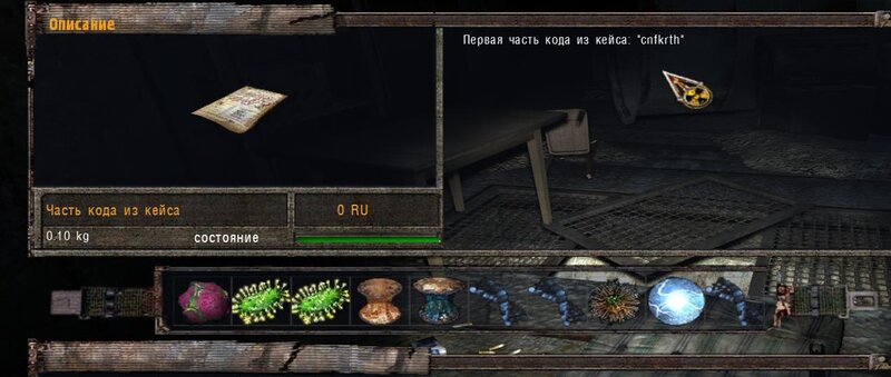 Poszedłem na Jantar po walizkę - jet na ziemi tam gdzie tokarka - UWAGA - wejście do hangaru jest zaminowane. Na kartce obok walizki jest napisane by kodu do niej szukać w schowku Striełoka - jeżeli jesteśmy odpowiednią osobą to wiemy gdzie to jest. Do X-10 nie mamy co się pchać - jest zaminowane i w razie nieuprawnionego wyłączenia nastąpi wpuszczenie gazu. W schowku Strzelca odnalazłem kartkę z kodem: 20061204. Otworzyłem walizkę i tam jest pierwsza część kodu do rozbrojenia: cnfkrth.