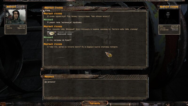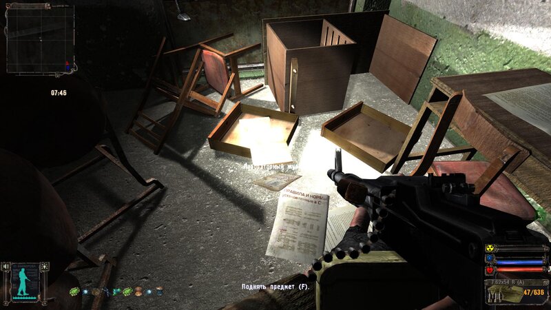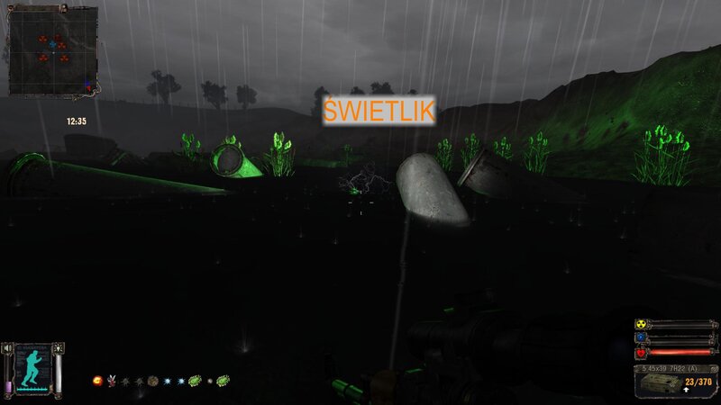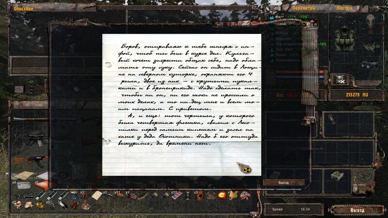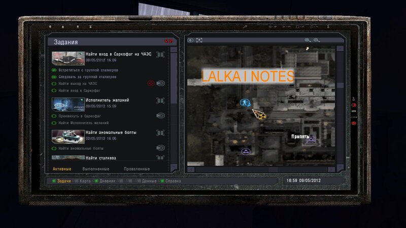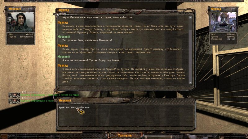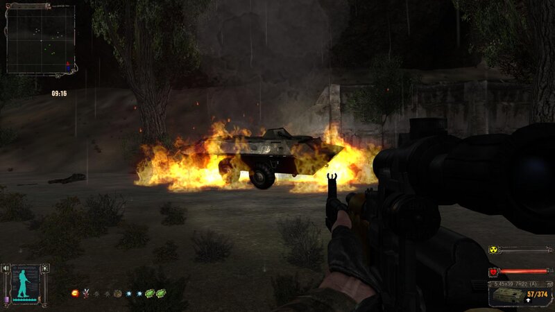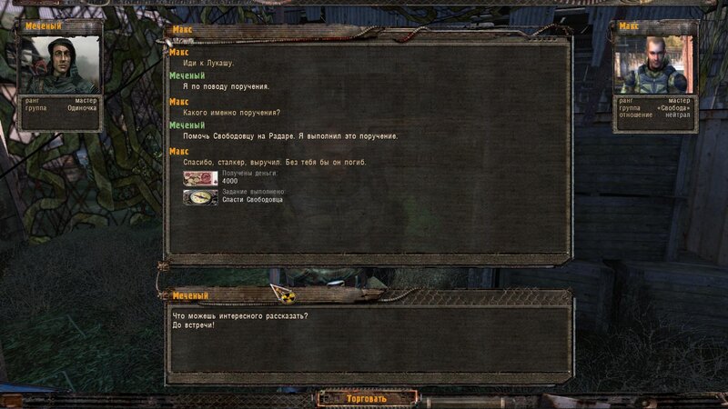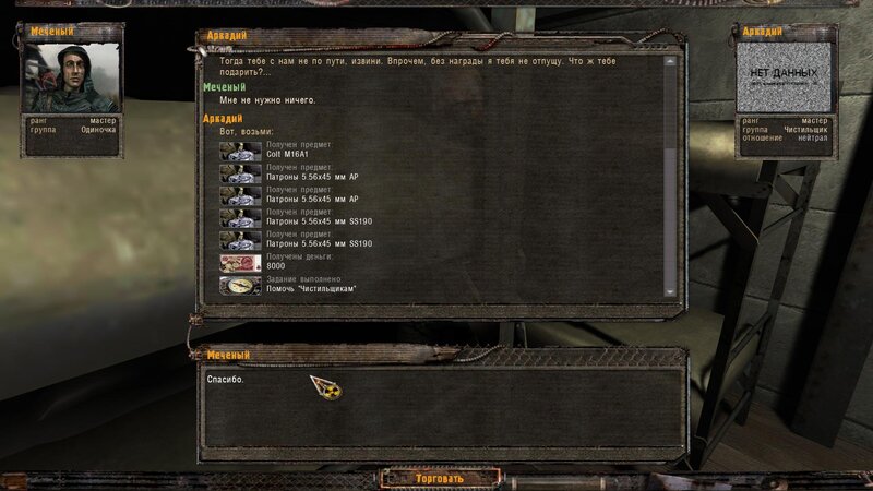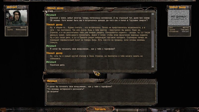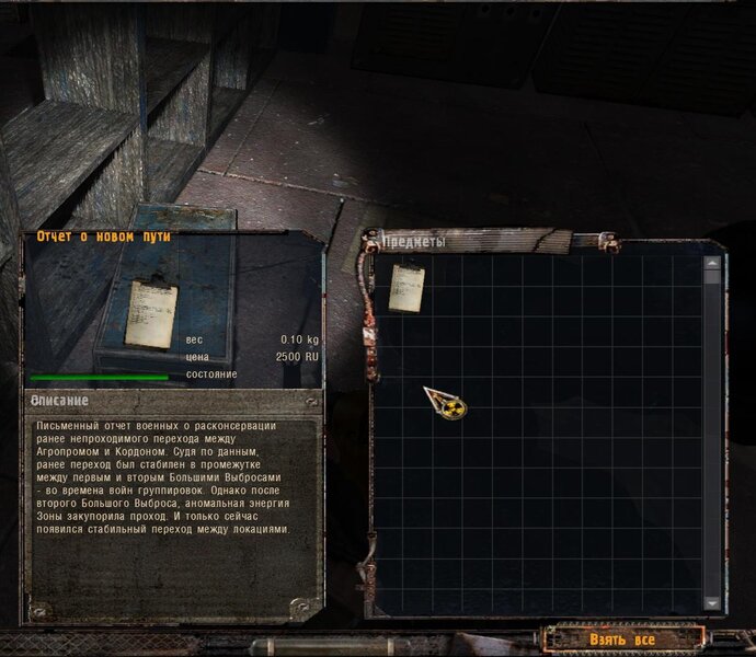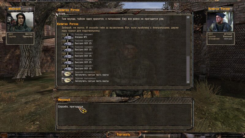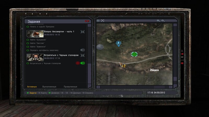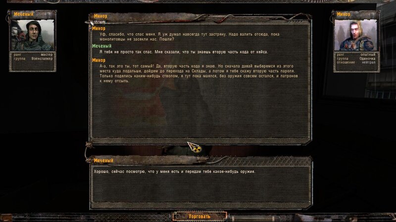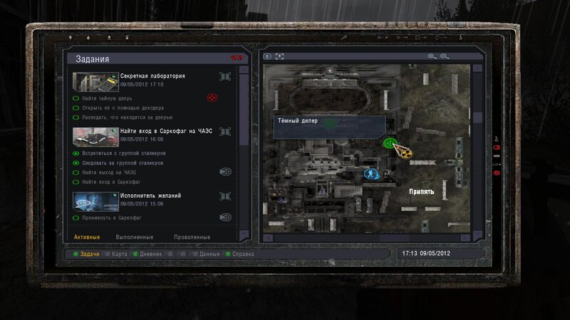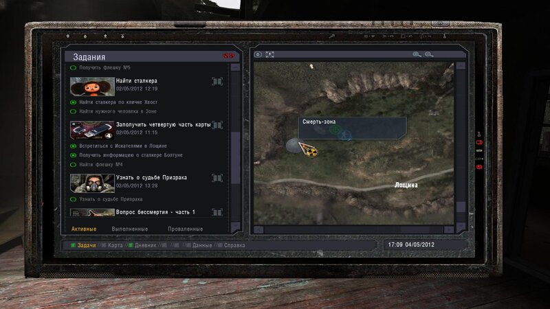 Po zabraniu artu i ucieczce wojsko zaczyna strzelać - ja ich wykończyłem. Wojsko pod mostem pomimo tego nie strzela. Dostajemy kasę od Sidora. Kolejne zadanie jakie od niego wziąłem to podsłuchanie najemników na Wysypisku. Kiedy podchodzimy do ich grupy podświetla nam się zadanie by wyciągnąć mikrofon kierunkowy - klikamy na niego w inwentarzu i przez 45 sekund nagrywamy. Po sprawie przychodzi SMS od Sidora. Podczas emisji mamy ciekawe menu PDA.