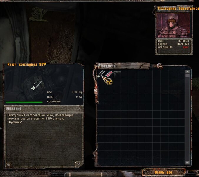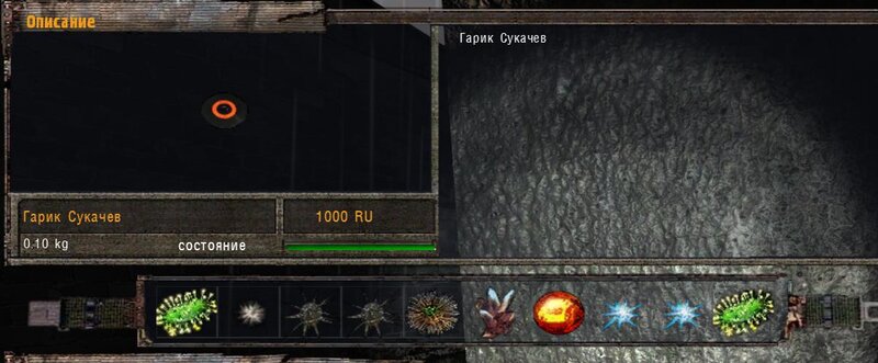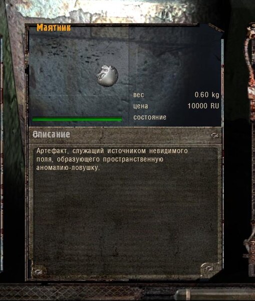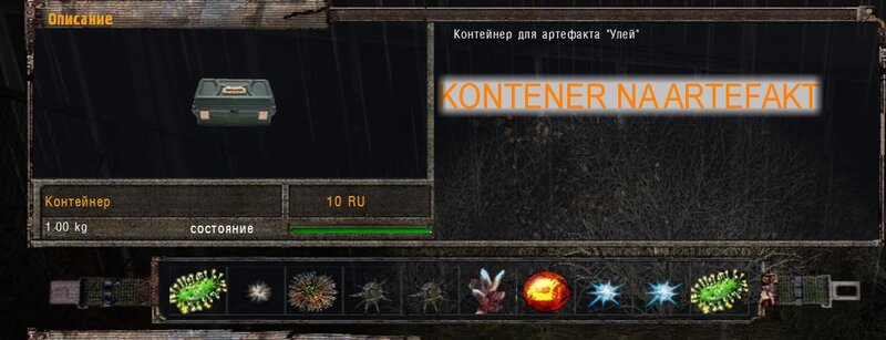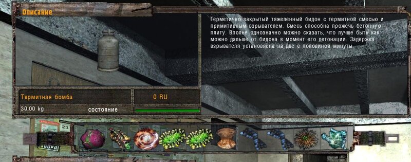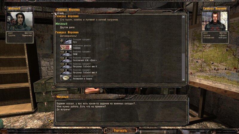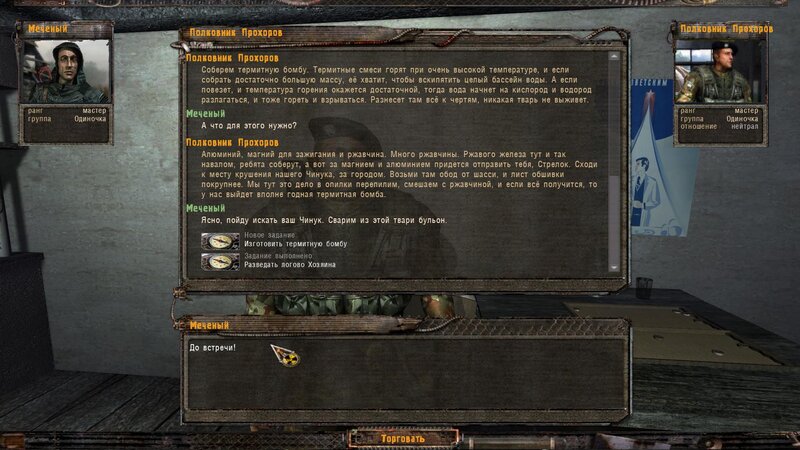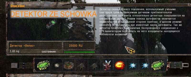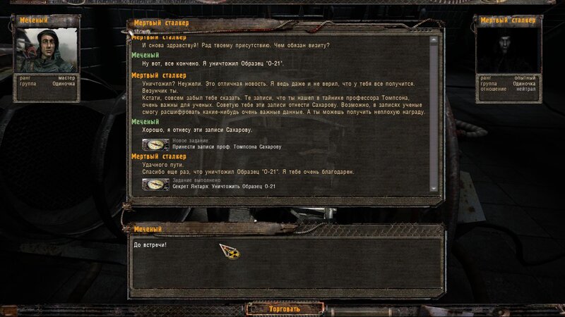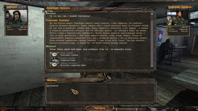 Za dokumenty Tompsona z sejfu Figi dostajemy kartridże do bioradaru z danymi o mutantach. Mamy tez na stanie instrument diagnostyczno-leczący i kartridże do niego. U Sacharowa można też wziąć zamówienie na artefakty i części mutantów.