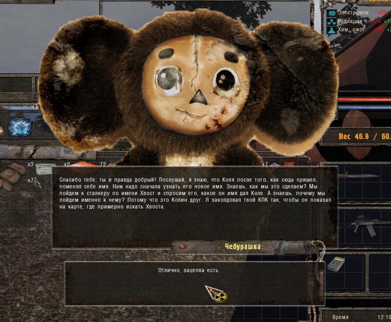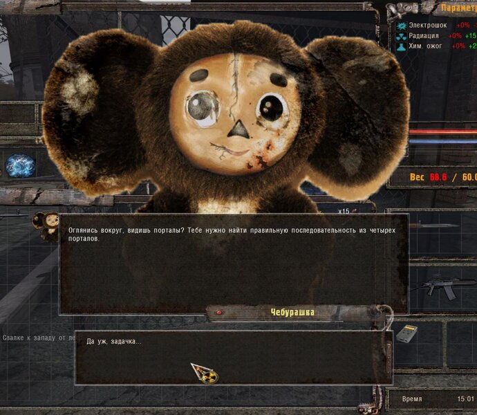 Wasia zginął - mówimy z Pietią Szukinem. Odprowadzamy go do domu - prosi byśmy z nim pobyli - obawia się zabójstwa. Przychodzi Troll i zaczyna atakować Pietkę - kasujemy Trolla - po tym Pietka opowiada nam o artefakcie w tunelu kolejowym. Na miejscu okazuje się, że to nie artefakt a Czeburaszka ;D - była kiedyś taka bajka o nim Rosyjska. Przychodzi SMS byśmy zajrzeli do inwentarza i pogadali z nim. Czeburaszka opowiada nam o swoim właścicielu - mamy pomóc go odnaleźć - w tym celu mamy pójść do Baru pomówić z Chwostem.