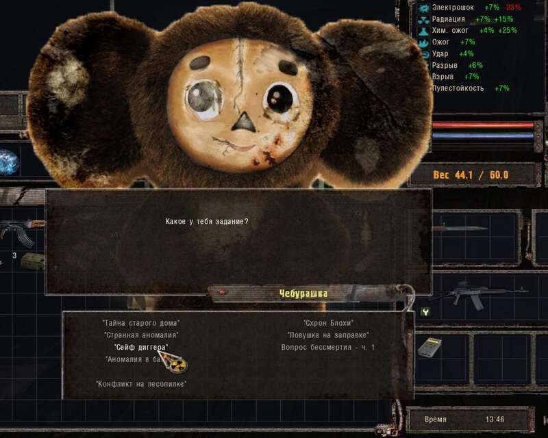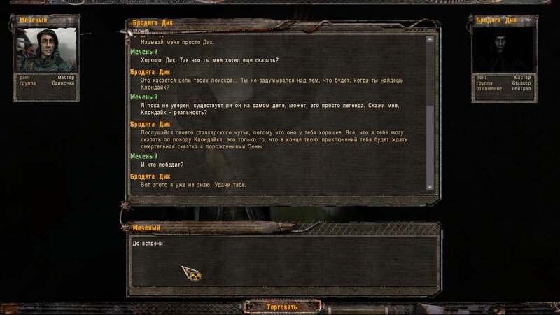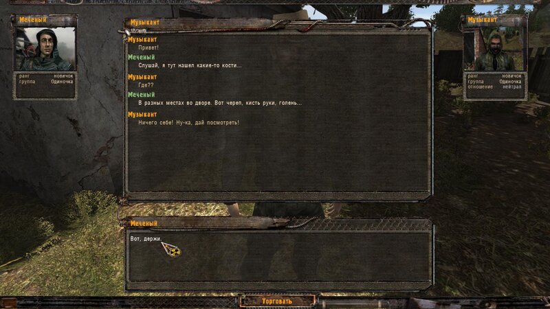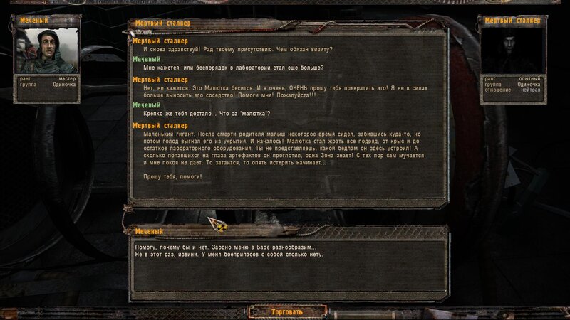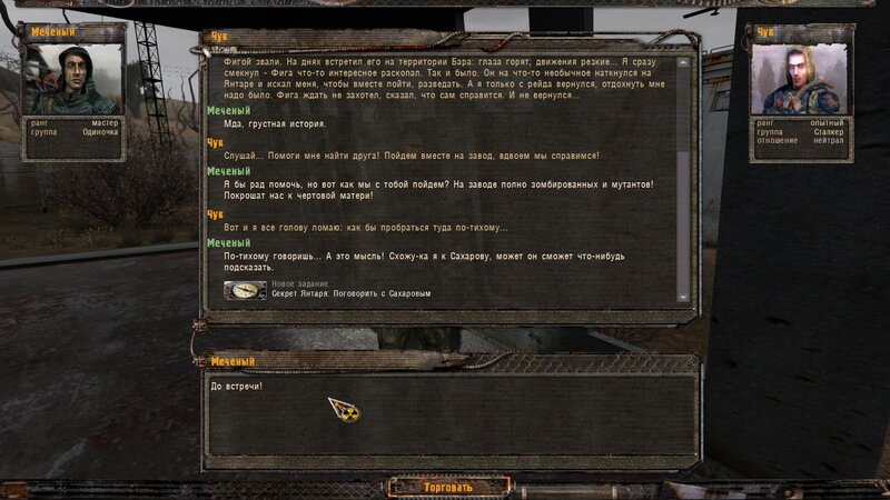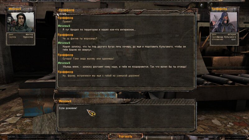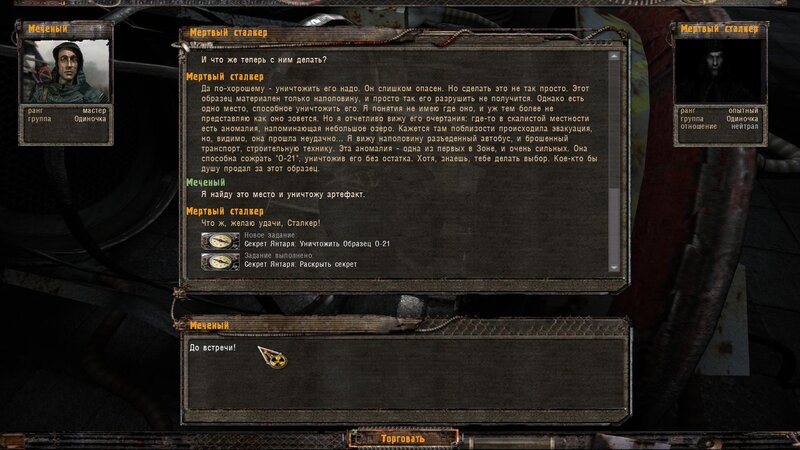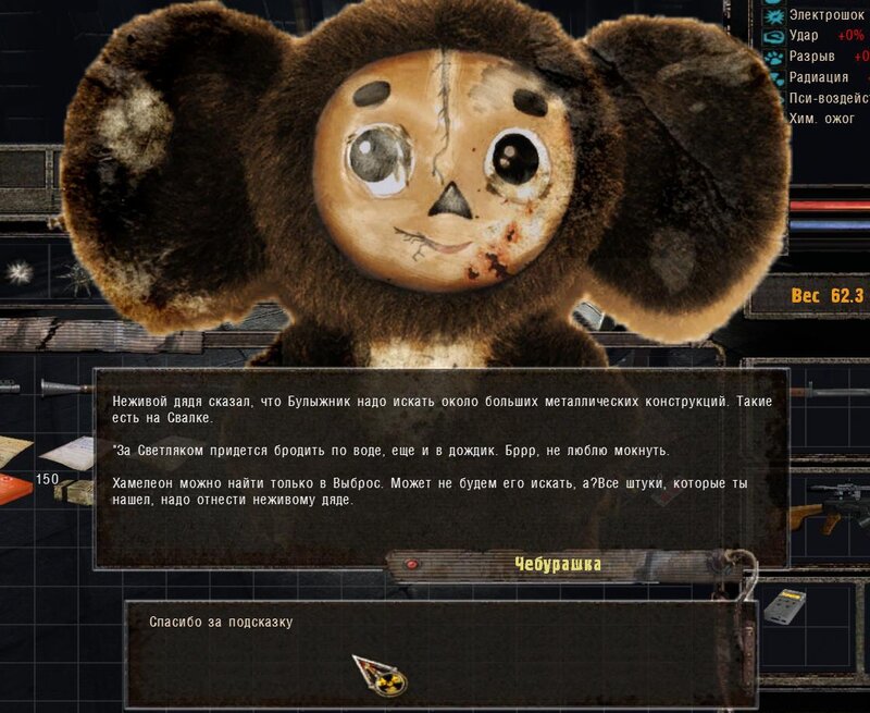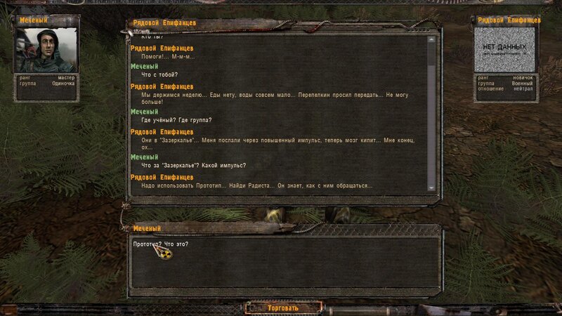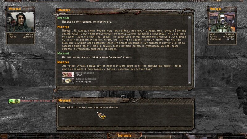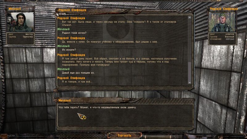 Zabity mówił coś o prototypie który może obsługiwać Radist - sobowtór. Riadowoj Enifiencew tłumaczy nam wszytsko pokrętnie. Musimy znaleźć schowek Riadista na dziczy - może być w trzech różnych lokalizacjach. Od Sacharowa dostajemy żyworódkę - mamy ja wypić z Czukiem - zombi nas nie będą widzieć.