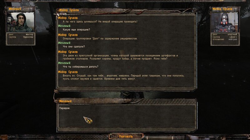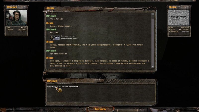 Znajdujemy mapniki i mówimy z Riadowojem i namierzamy sygnał. Przy okazji nabieramy wody na bagnie. Kiedy podchodzimy do miejsca sygnału znajdujemy człowieka o takiej samej tożsamości jak Riadowoj. Pada strzał i wojskowy ginie.