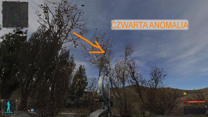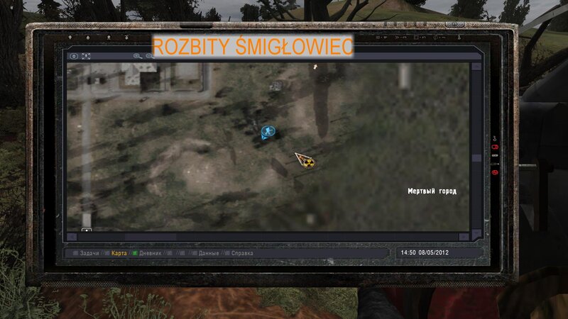 Wkładamy artefakt w slot i ruszamy do Śmierć - Zony. Ta unosi się nad ziemią. Pod centralną wyspą jest teleport. Przychodzi SMS od Czeburaszki - podpowiada nam, że do domku dostaniemy się jednym z teleportów. Ten nad drzewem to właściwy. Zabieramy z ciała fleszkę nr 4 i art z domku.