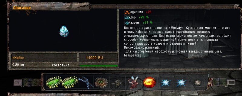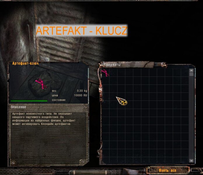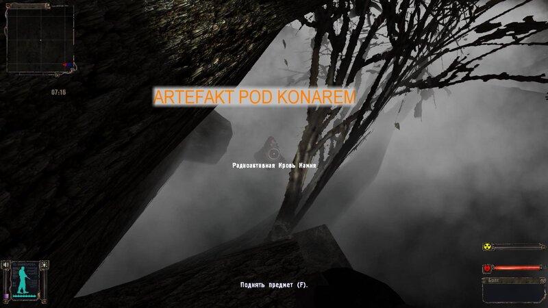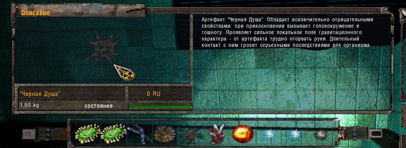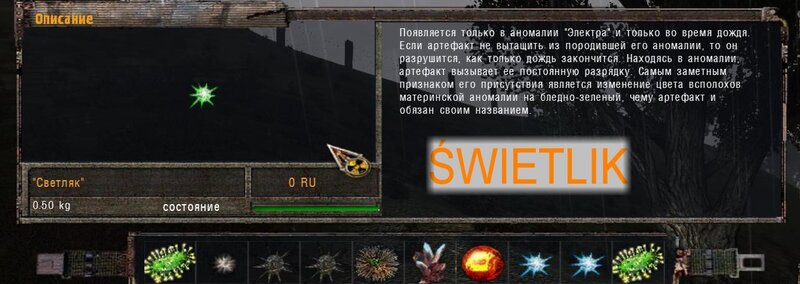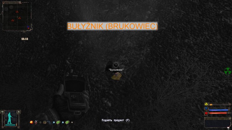 Odnalazłem ostatni artefakt dla Nieumarłego - Bułyżnik (brukowiec). Zgodnie z podpowiedzią Czeburaszki szukałem na stertach złomu na Wysypisku. Mam detektor Weless - po naciśnięciu “8” mamy go w dłoni - artefakty pokazuje na zielono anomalie na czerwono. Art był na stercie na przeciw hangaru. Odnalezione Kameleon, Świetlik i Bułyżnik zaniosłem do Nieumarłego. Ten ma dla nas kolejne zadanie - zanieść arty do anomalii Galareta w laboratorium - tam gdzie wanna - po tym jak stanąłem koło anomalii arty połączyły się i powstał art Czarna Dusza - pamiętamy by nie zakładać go na pas. Oddajemy Czarną Duszę nieumarłemu - w nagrodę dostajemy Niebo i Korale.