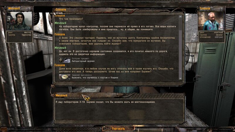 Poszedłem na poszukiwanie dokumentów do doliny - mamy rozpytać się u miejscowych o naukowców. Poszedłem do Dziadka Zacharycza. Ten mówi nam o grupie uczonych którzy znaleźli mały lab w tunelu kolejowym - ale prawdopodobnie zginęli - tam mieszkał kontroler. Na miejscu zabijamy mutanta i zzombifikowanych naukowców. Odnajdujemy dokumenty dla Sacharowa. Przy okazji zaszedłem do X-18 w drodze powrotnej - pomówiłem z Nieumarłym Stalkerem - mamy unicestwić artefakt O-21 w anomalii w której są rozbite auta - taka anomalia jest w Dolinie.