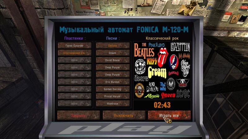 W Barze stoi szafa grająca - mówimy z Baranem o tym. W zonie znajdujemy różne płyty z muzyką. Jeżeli podejdziemy do szafy to aktywujemy tę muzykę, którą znaleźliśmy.