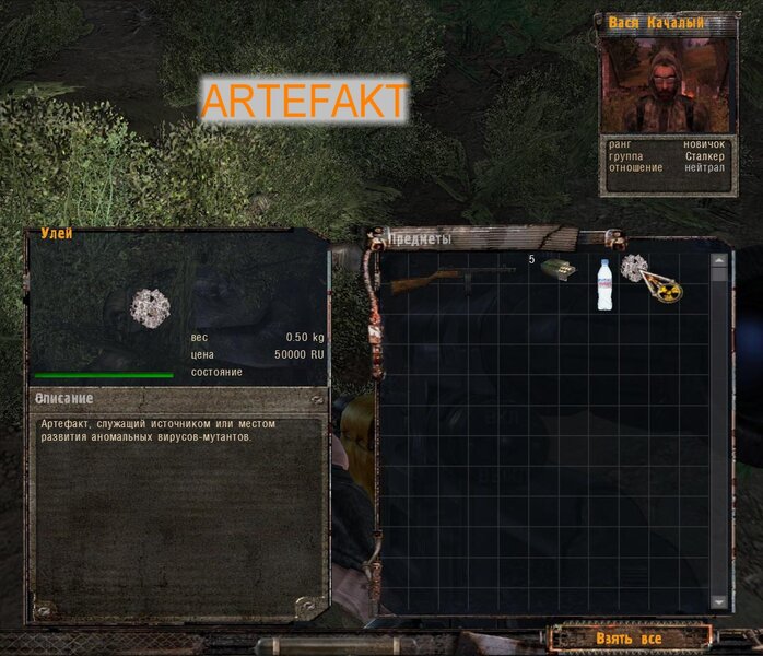 Poszedłem do Doliny Mroku po artefakt Ulei (Ul). Jest przy zwłokach Wasi Kaczały na wysepce przy moście. Art sam się “zapakował” do skrzyni. Po powrocie mówimy z Doktorem Gorbowskim - jest na arcie szczep bakterii. Dostajemy zastrzyk i leczeni są pozostali zarażeni. W nagrodę dostajemy artefakty.