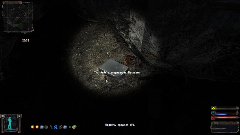 Poszedłem z Doliny Mroku do Doliny - tam odnalazłem anomalię za stacją benzynową koło drogi. Wrzuciłem O-21 do bajora i art uległ rozpadowi. Nieumarłemu zdałem relację. Mamy oddać dokumenty Tompsona z sejfu Figi dla Sacharowa. Na miejscu oddajemy dokumenty odnalezione w labie z kontrolerem. Dostajemy hełm, bioradar i instrument leczący.