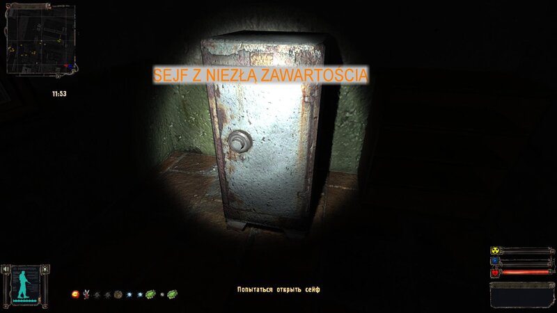 SMOX znalazł w Barze sejf w zielonej przybudówce koło hangaru - pojawia się napis byśmy spróbowali do niego się dostać - otwieramy zawartość z niskiego przysiadu - miodzio ;D ;D ;D