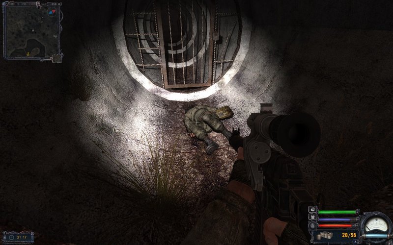 Obok bagna i zamkniętej kraty, która prowadzi do kanałów leży kolejne ciało stalkera. Ma przy sobie drogą fleszkę, którą możemy sprzedać mechanikom.