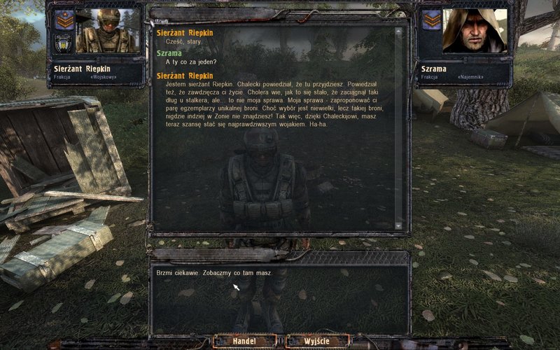 Nieopodal wioski nowicjuszy możemy natknąć się na wojskowego, który zechce z nami handlować. Wystarczy dać pistolet Chaleckiemu.