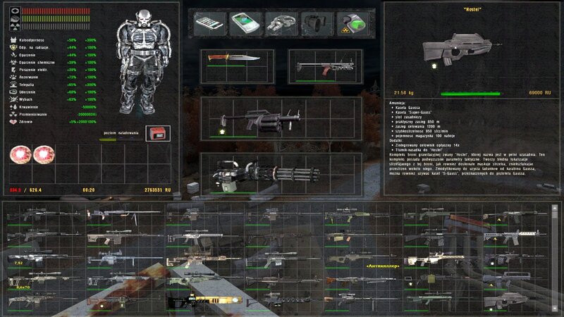 - Zmieniono wygląd kontenerów na artefakty. Od teraz można przełączyć się pomiędzy różnymi kontenerami w inwentarzu, nie zamykając jednocześnie jego okna. W menu kontenera pojawiło się oznaczenie określające poziom promieniowania, które kontener nie jest w stanie zatrzymać w jego wnętrzu.
