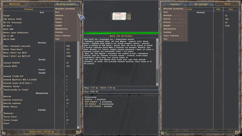 - Wartość amunicji i dodatków do broni - pod warunkiem, że są z nią zintegrowane - uwzględnia się podczas handlu.