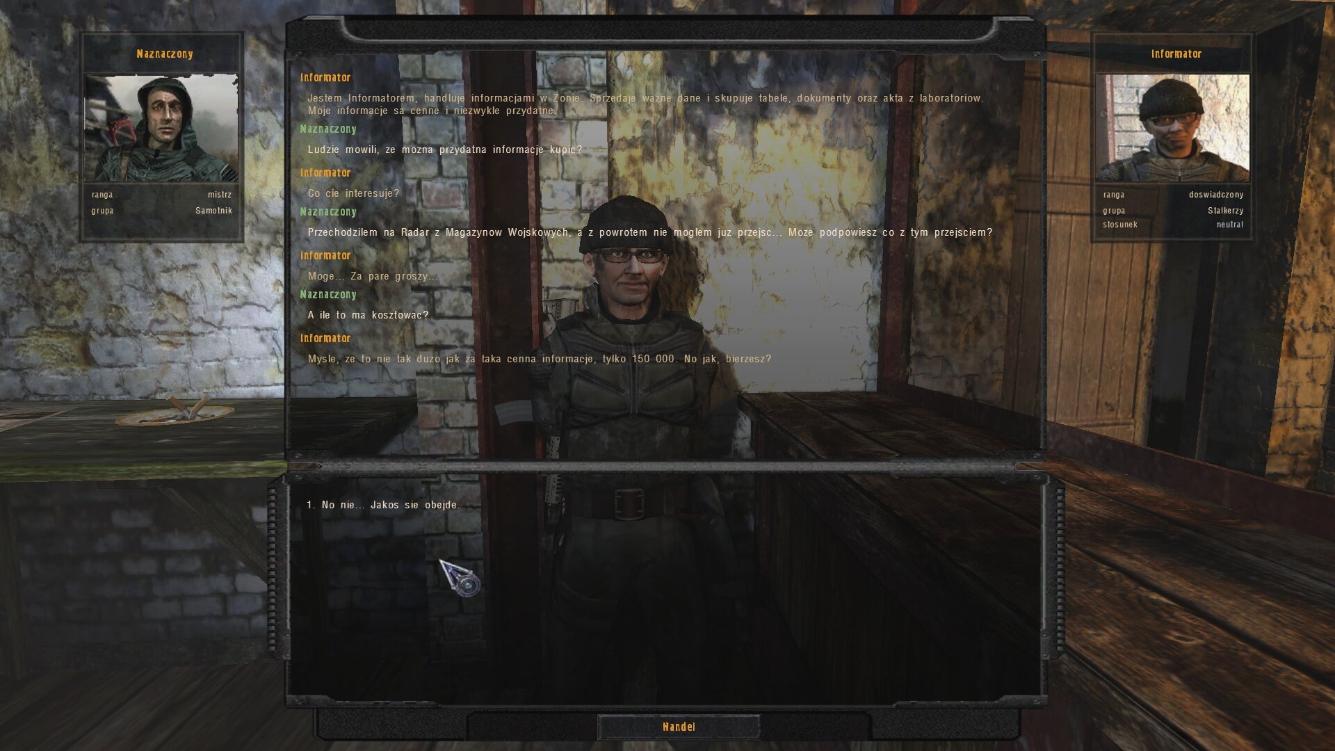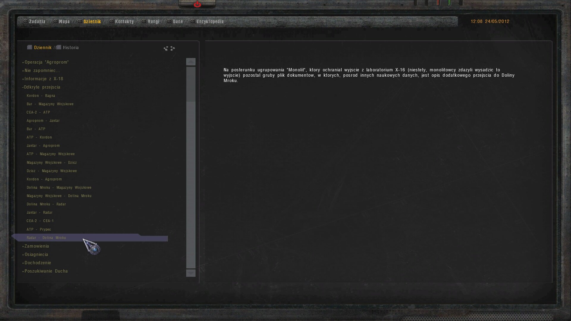- oczywiście że masz racje . Z Radaru można iśc w kilka miejsc. Ale pytanie było o Magazyny , a nie o DM lub Jantar - a tak sie składa że info o tym przejściu jest płatne u wiadomej osoby ![]()