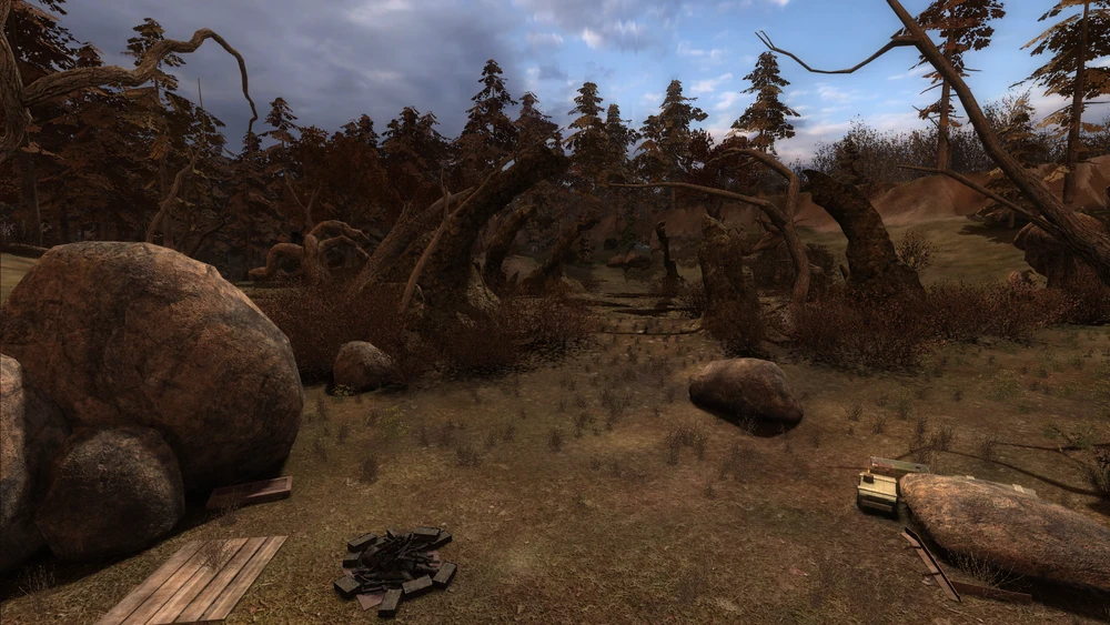 Schowek doświadczonego stalkera w Czerwonym Lesie. niby gdzieś koło anomalii ale tych przecież nie brakuje a obszar spory