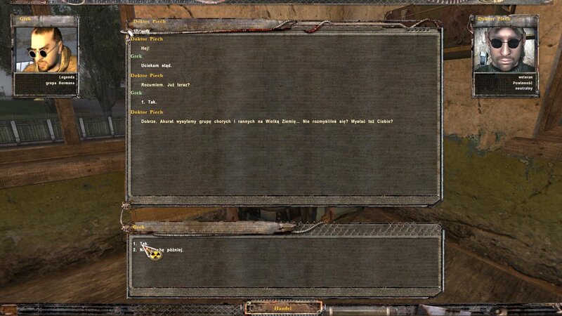Drugi teleport jest w lasku za bajorami i za nim spotkasz przyjaznych najemników. Przywódcy możesz opchnąć całą broń zabraną rozwalonym wysłannikom Pulewicza ( ma kupę kasy ). Masz do wyboru dwie opcję gry. Wziąć ich z pomocą za kupę kasy, lub im podziękować.