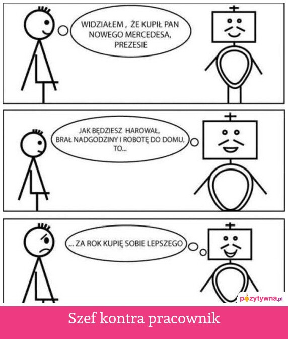 Nie wiem czy się zmienia, ja na co dzień akurat w większości (ale może nie przeważającej) widzę albo mentalność niewolniczą, albo “uśmiechniętych” dorobkiewiczów w autach na leasing. A po latach stwierdzam, że to tylko kwestia charakteru, nie świadomości. Jak masz się poniżać za dobre/wspaniałe/jakiekolwiek pieniądze, to część przyklaśnie i popłacze się ze szczęścia, a inni nie, bo wolą móc spojrzeć sobie w lustrze w twarz. A jak zaczynasz gardzić sobą, to zaczynasz gardzić też innymi, albo na takiego pozujesz, vide twórca tematu i twórcy tych wszystkich obrazków.
