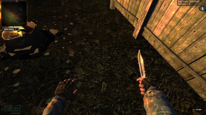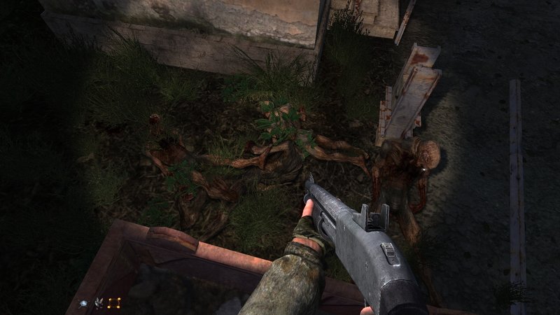Dalej brak gadki o hełmie. Na bagienku znajduję Prizraka (Ducha), podróż na Bagna, rozmowa z Doktorem. Powrót na Jantar. Rozmowa z Wasilewem o szukaniu części mutków. Zadanie się zawaliło, bo zostały wybite za pierwszym razem i nie ma ich nigdzie. Znowu nastąpiły ataki zombiaków. Tu nieprzyjemna przygoda, bo pomiędzy NPCami broniącymi bunkra zespawnował się od nich niewiele odróżniający wojskowy, skutecznie mnie eliminujący na koniec likwidacji fali mutków. Powtarzając, poszukałem go i zadanie dokończyłem. Ale informacja o hełmie nie przyszła. Poszedłem do Sacharowa i pojawił się nowy dialog o wejściu do labu. W nim o hełmie i zadanie na szukanie detektorów.