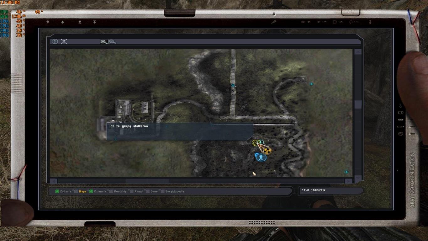 Idziemy do radaru, jeśli długo nie czyściliśmy radaru, to polecam oczyścić trasę do Varlab z dodatkowych zębów i pni. Następnie rozmawiamy z Vitaminem (grupa nadal stoi przy wejściu do loki), towarzyszymy grupie do dziury w siatkowym płocie, ponownie rozmawiamy z Vitaminem i jedziemy do Varlab.