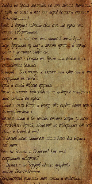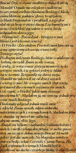 Monolit nie odwrócił się od dzieci swoich i wierzy w nas! Ale wrogów moich zbyt wielu jest nawet dla wiernych wyznawców moich.