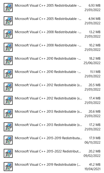 Możesz wrzucić screena jakie vc++ masz zainstalowane to zerkniemy, których może brakować.
