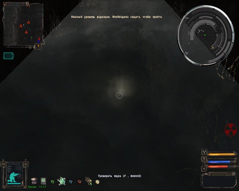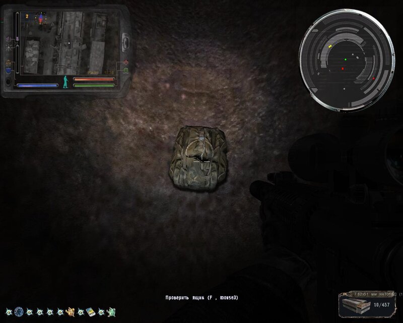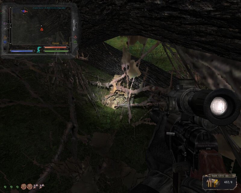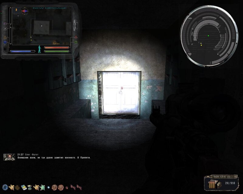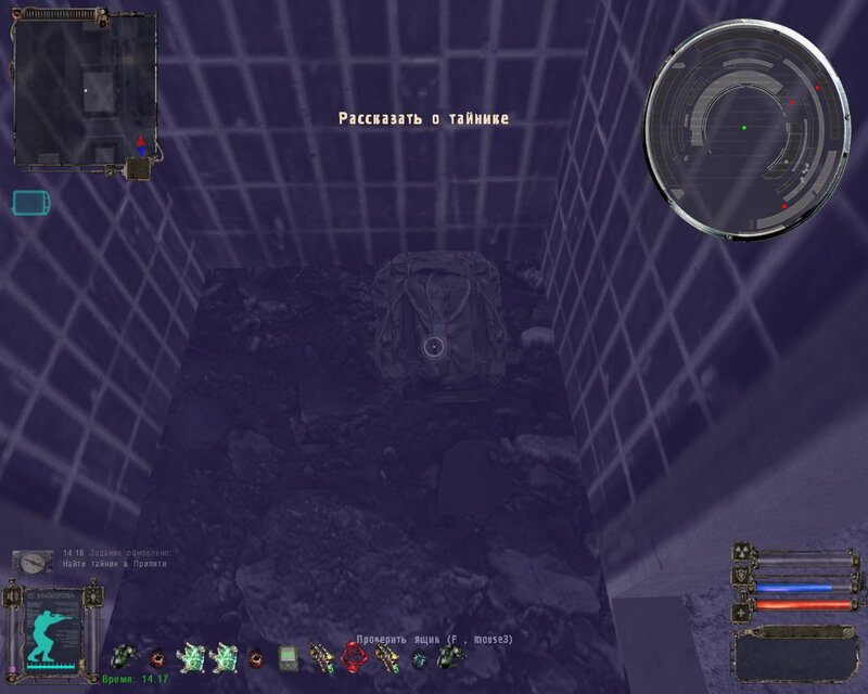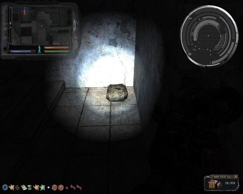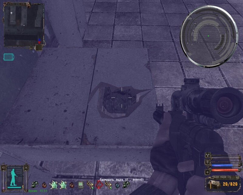 ! Rada: Przy wzięciu PDA ze schowka na Radarze, następuje kompleksowe uderzenie. Według schematu GG powinien być w pełni zdrowy i według możliwości obwieszony artefaktami przeciwdziałającym skutkom uderzeń. Natychmiast po wzięciu PDA, zaczynamy często i szybko naciskać klawisz , i myślę, że wszystko będzie dobrze.