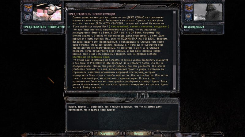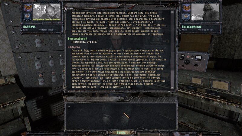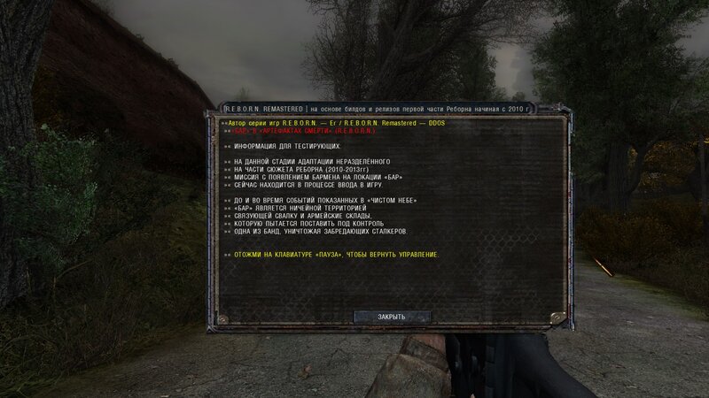 Pograłem sporo do momentu kiedy przy wejściu na lokację Bar, nie pojawił mi się ten charakterystyczny dla Odrodzonych informator o lokacji. Ale zamiast niej, jest to informacja dla tych co podjęli się testowania, że te lokacja jest dopiero w opracowani, bo w odróżnieniu od CzN, teraz nie jest neutralna, a rządzi nią jedna z band. Sprawdziłem to i faktycznie, miałem na niej tylko wrogich bandytów ( maruderów ), i kilku powinnościowców na klęczkach z rękami na głowie. No i przede wszystkim brak Barmana, przez co nie mogłem zrealizować sprzedaży sprzętu od którego chciałem się uwolnić dla bardzo potrzebnej kasy.