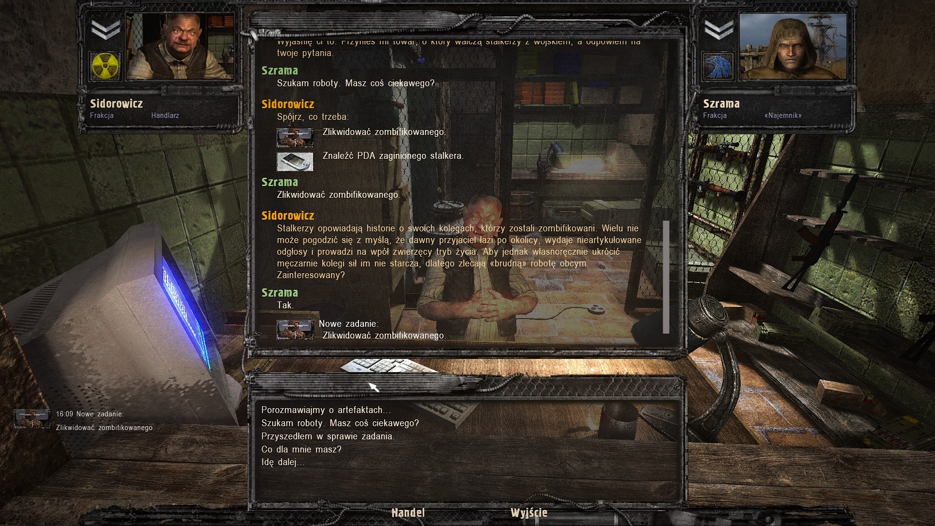 1. Na Agropromie nie bierzemy zadania na znalezienie zwłok zabitego stalkera, przy którym mamy odnaleźć artefakt - zadanie raczej jest zepsute i nie pojawia się ciało, z którego mamy zabrać artefakt (przynajmniej u mnie się nie pojawiło).