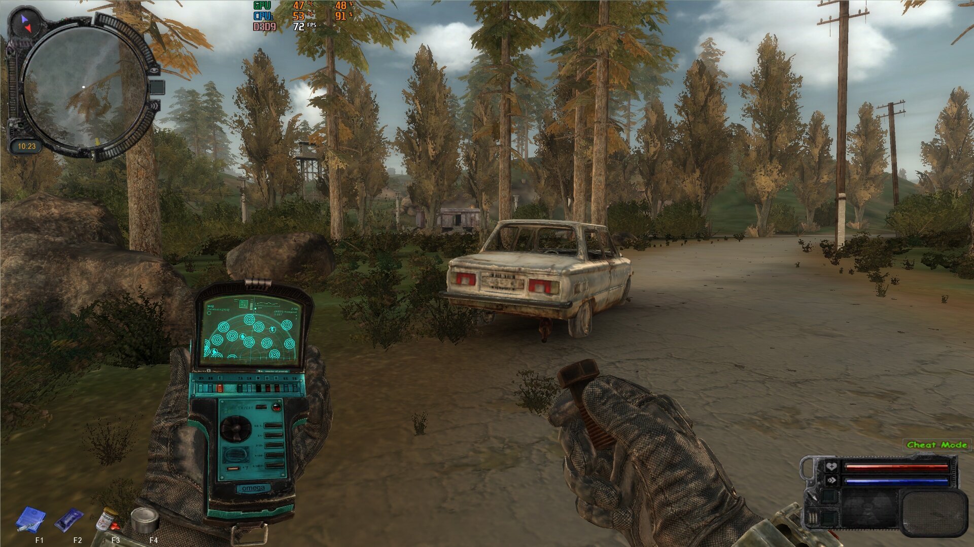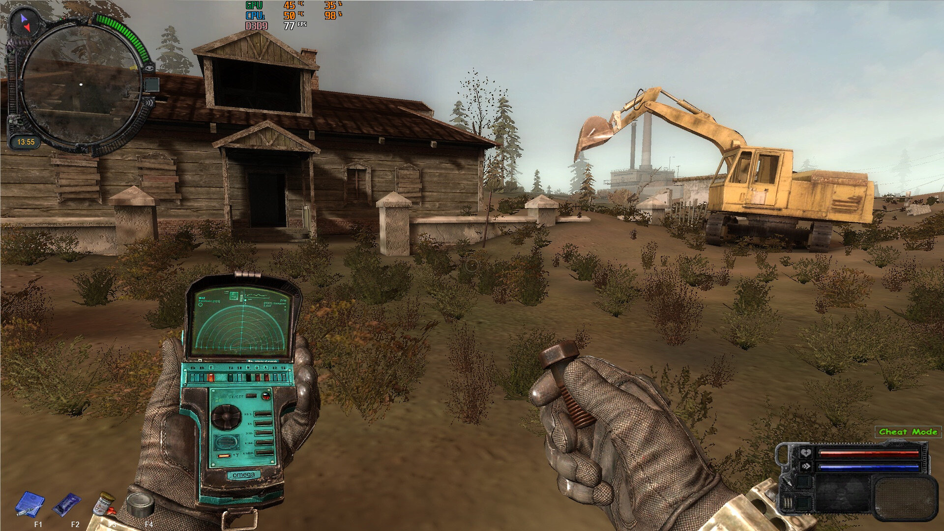 Ja nie umiem wyciąć obrazu z gry, u mnie obraz na detektorze jest o wiele mniej widoczny, anomalie i artefakty pokazuje ale jakieś takie słabe, u Ciebie to jest wyraźne, jakoś dam radę, dziękuję za grzeczność.